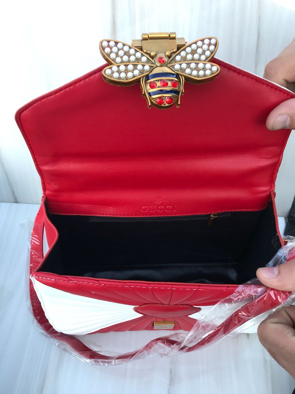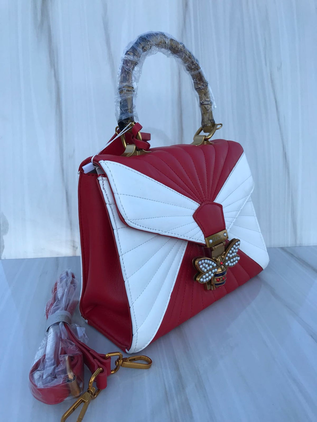 GG red & white colour BEE bling bling women casual and work bag