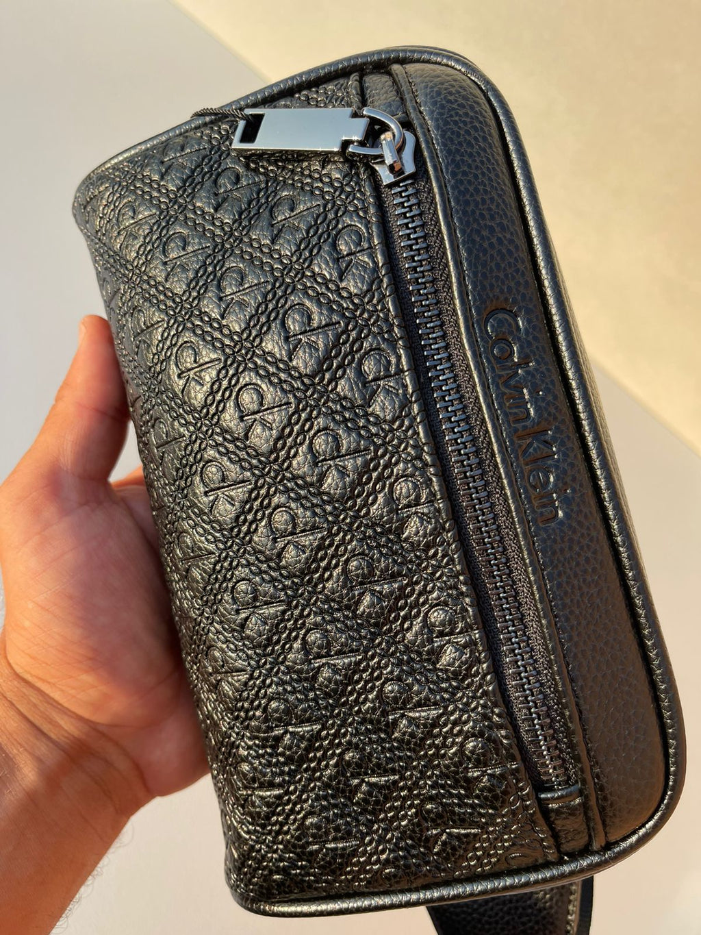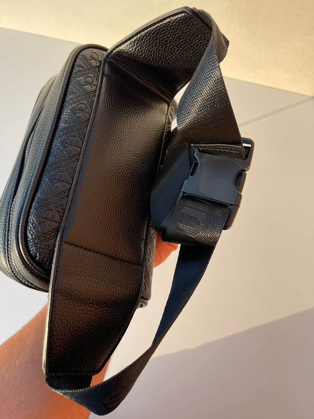 The black Calvin Klein messenger bag has a retro influenced design. A compartmentalized construction features a flap closure on each side. The center open compartment can be opened using the magnetic gussets.