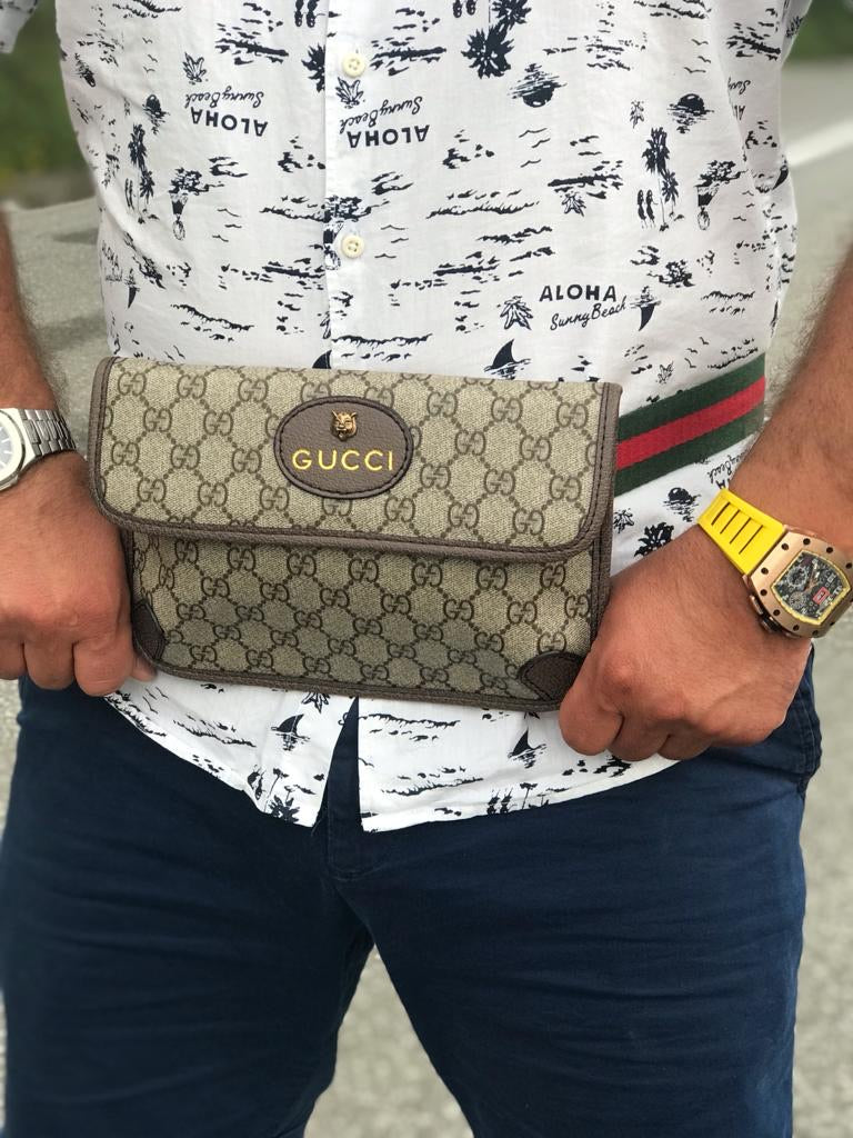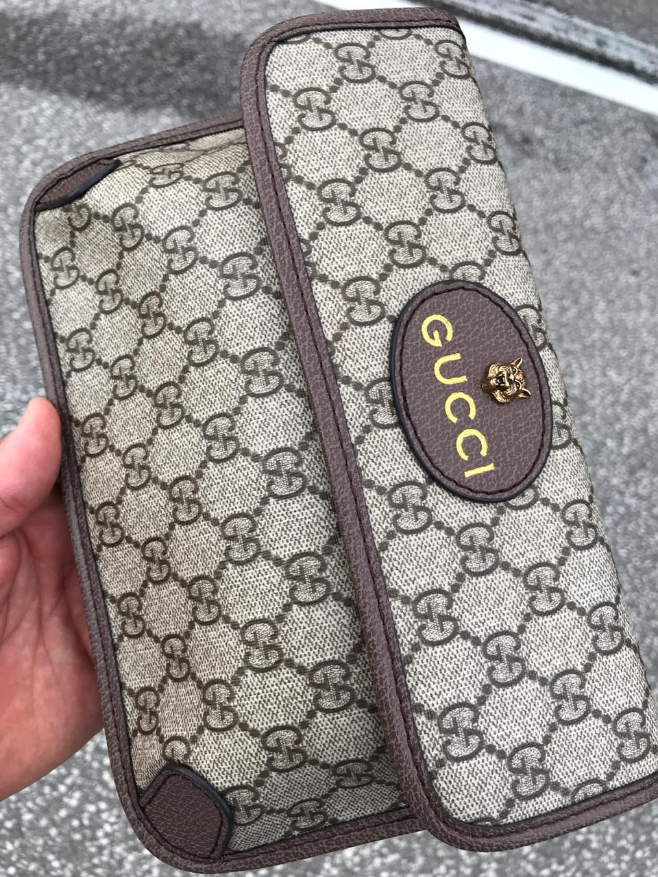 The GG Supreme messenger bag has a retro influenced design. A compartmentalized construction features a flap closure on each side. The center open compartment can be opened using the magnetic gussets. Beige/ebony GG Supreme canvas, a material with low environmental impact Brown leather trim Brass hardware Green and red Web Oval Gucci leather tag with feline head Center compartment with magnetic gusset Adjustable nylon Web shoulder strap with 20" drop Magnetic flap closure on each side 12"W x 8.5"H x 1.5"D Made in Italy Cotton linen lining