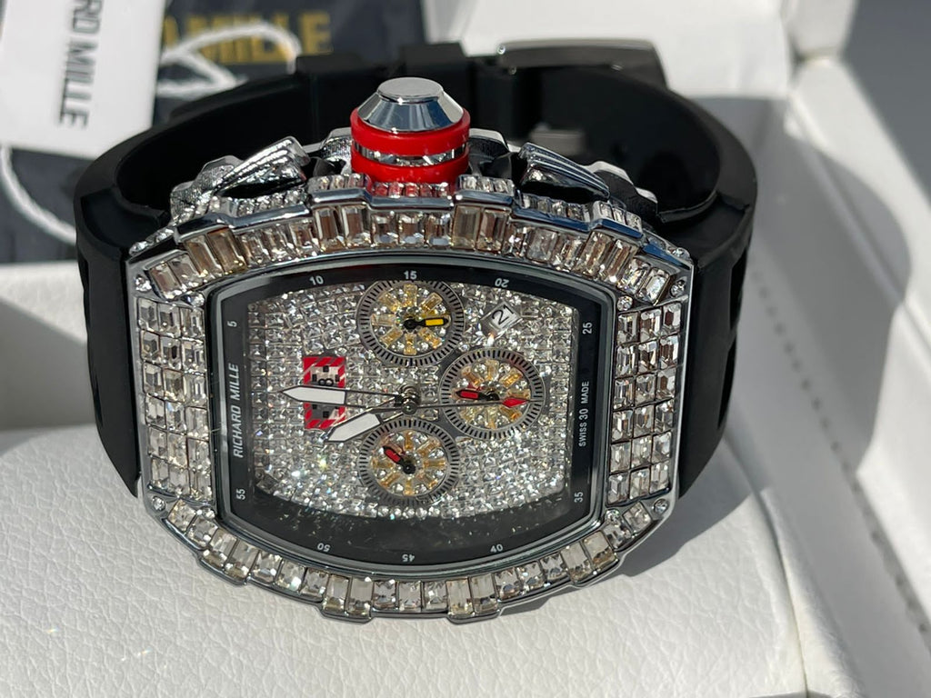 Best Replica Richard Mille Iced Out on Black with Rose&gold case