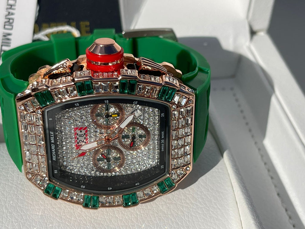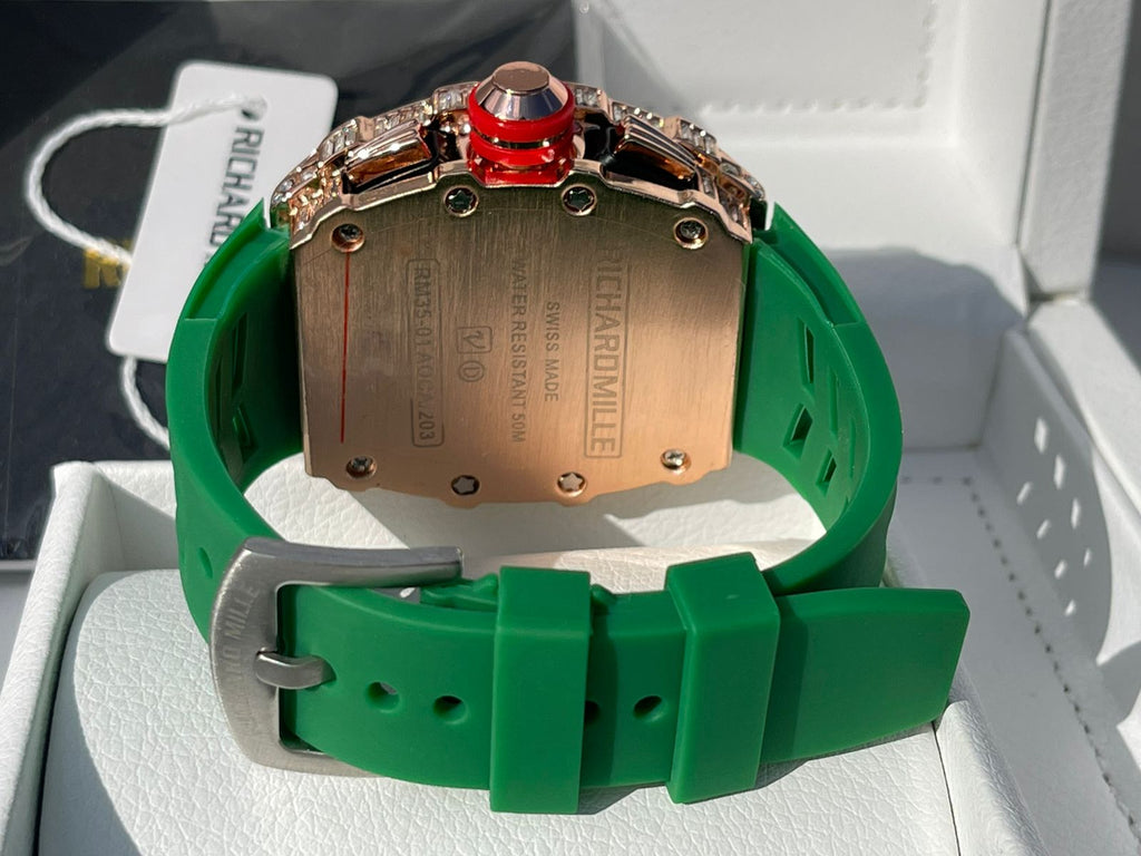 Best Replica Richard Mille Iced Out on Green with Rose&gold case