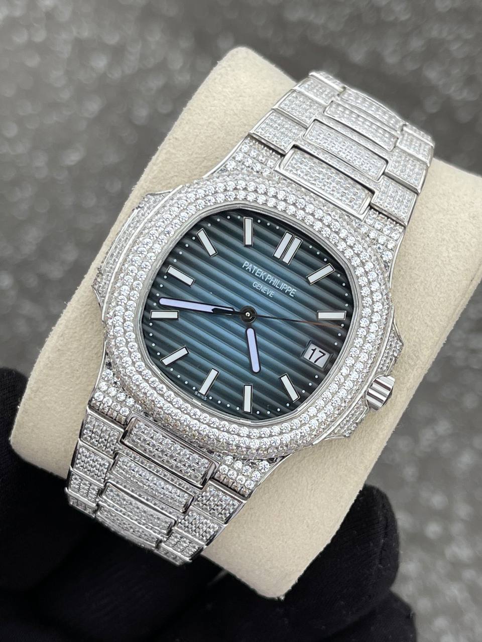 Best Replica Patek Philippe Nautilus Blue field Iced Out 5711 1:1 Doublete ETÁ