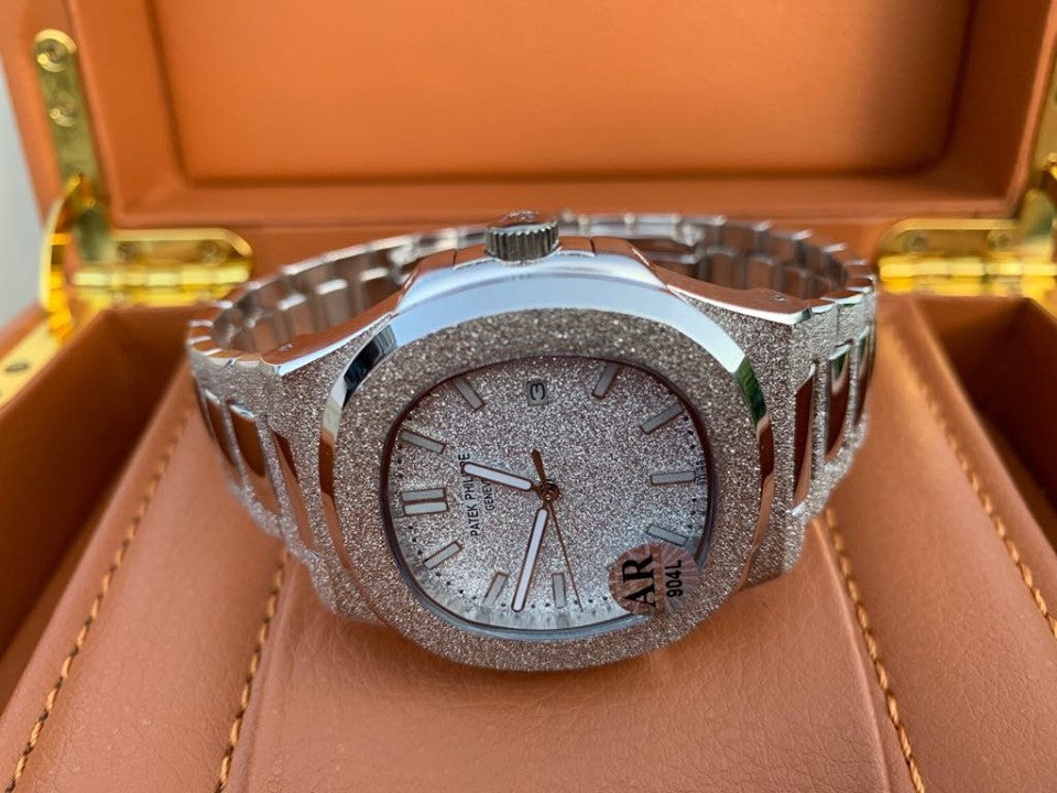 Brand: Patek Philippe Model: Nautilus Frosted Movement Automatic Case material: Steel Bracelet material: Steel Scope of delivery: With box like original and papers Gender Men's watch/Unisex