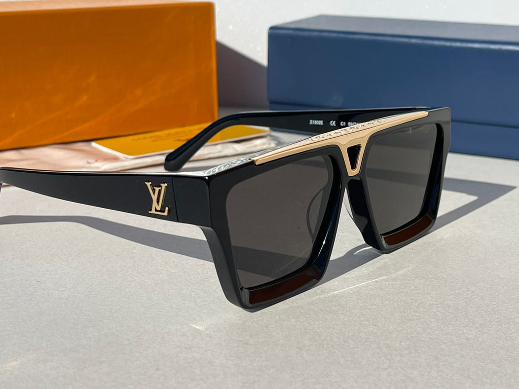 These aviator-style, square sunglasses feature Louis Vuitton's historic Damier pattern in a matte and shiny finish on the frame. A timeless, classic model.