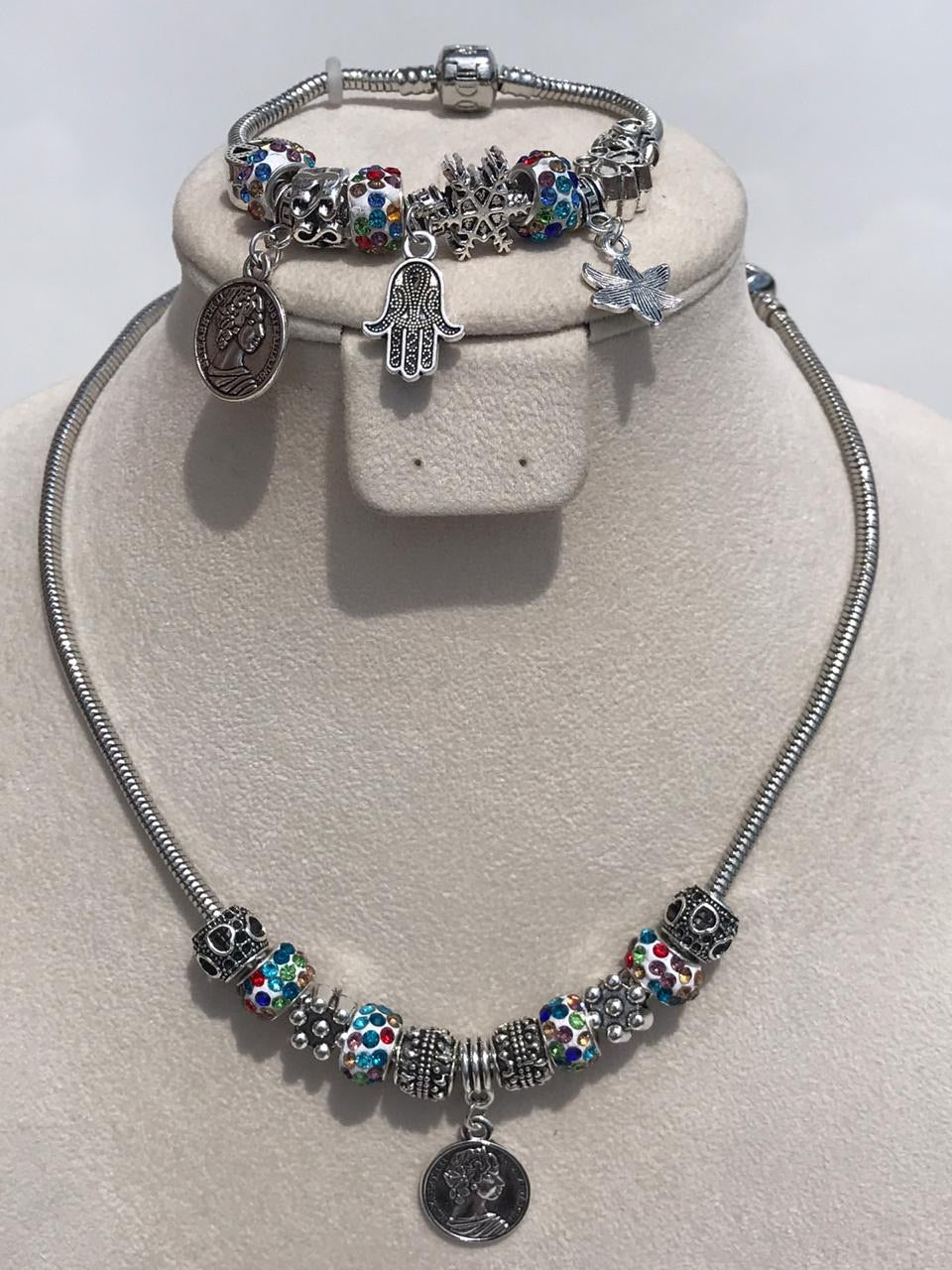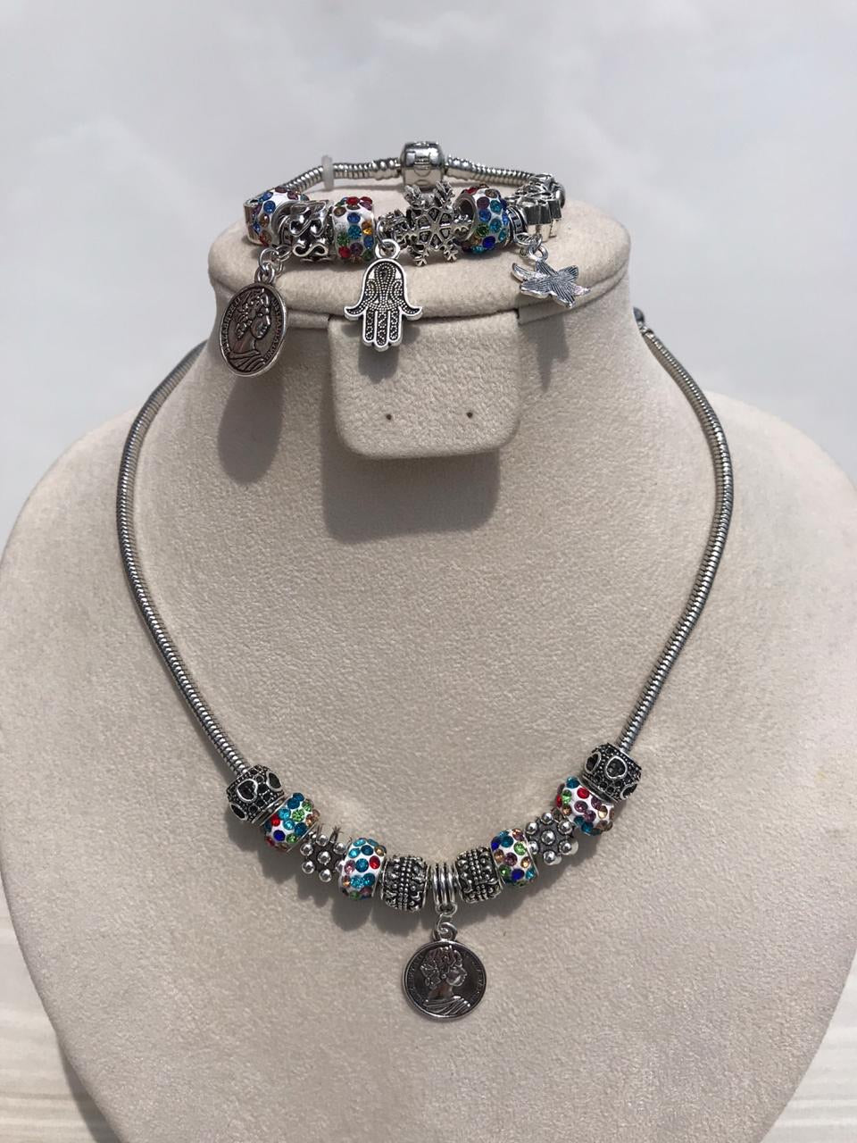 Full set of pandora, blue light mixed rainbow of queen Elisabeta Necklace