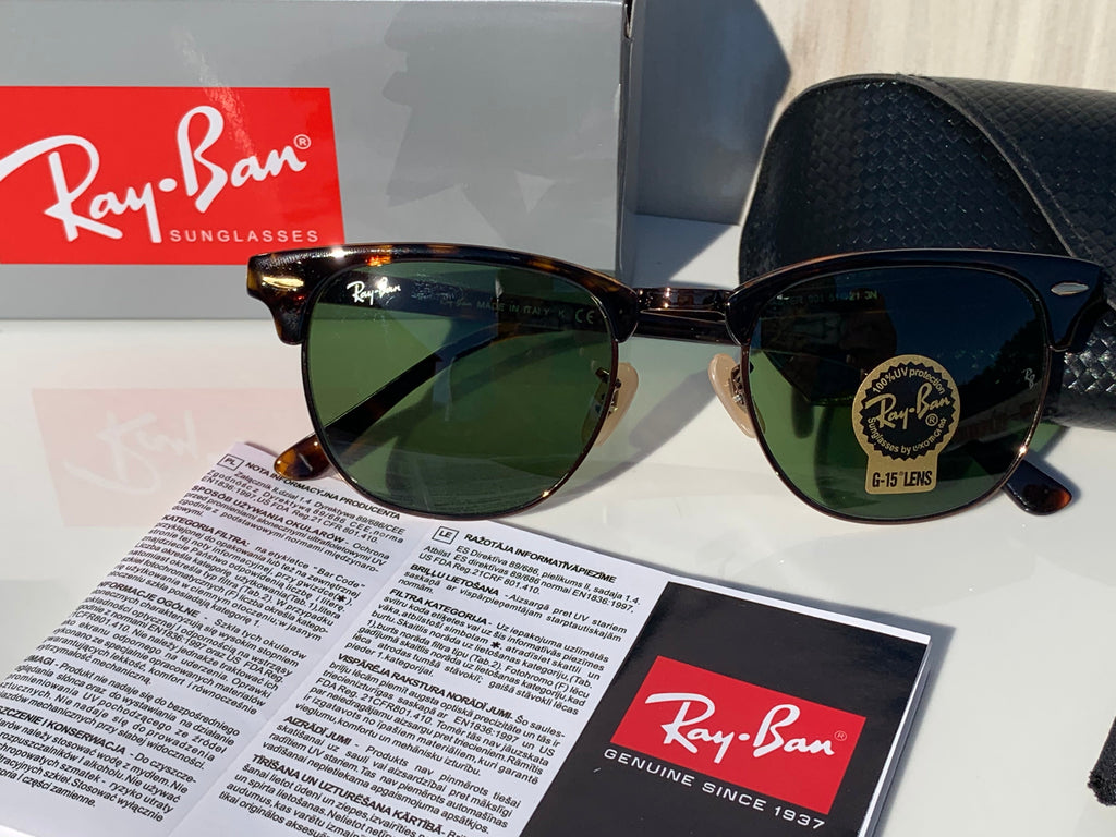 Choose the iconic Clubmaster Classic sunglasses design in black or brown frames with a crystal green lens treatment. While wearing Ray-Ban RB3016 Clubmaster Classic design, you’ll always make a statement