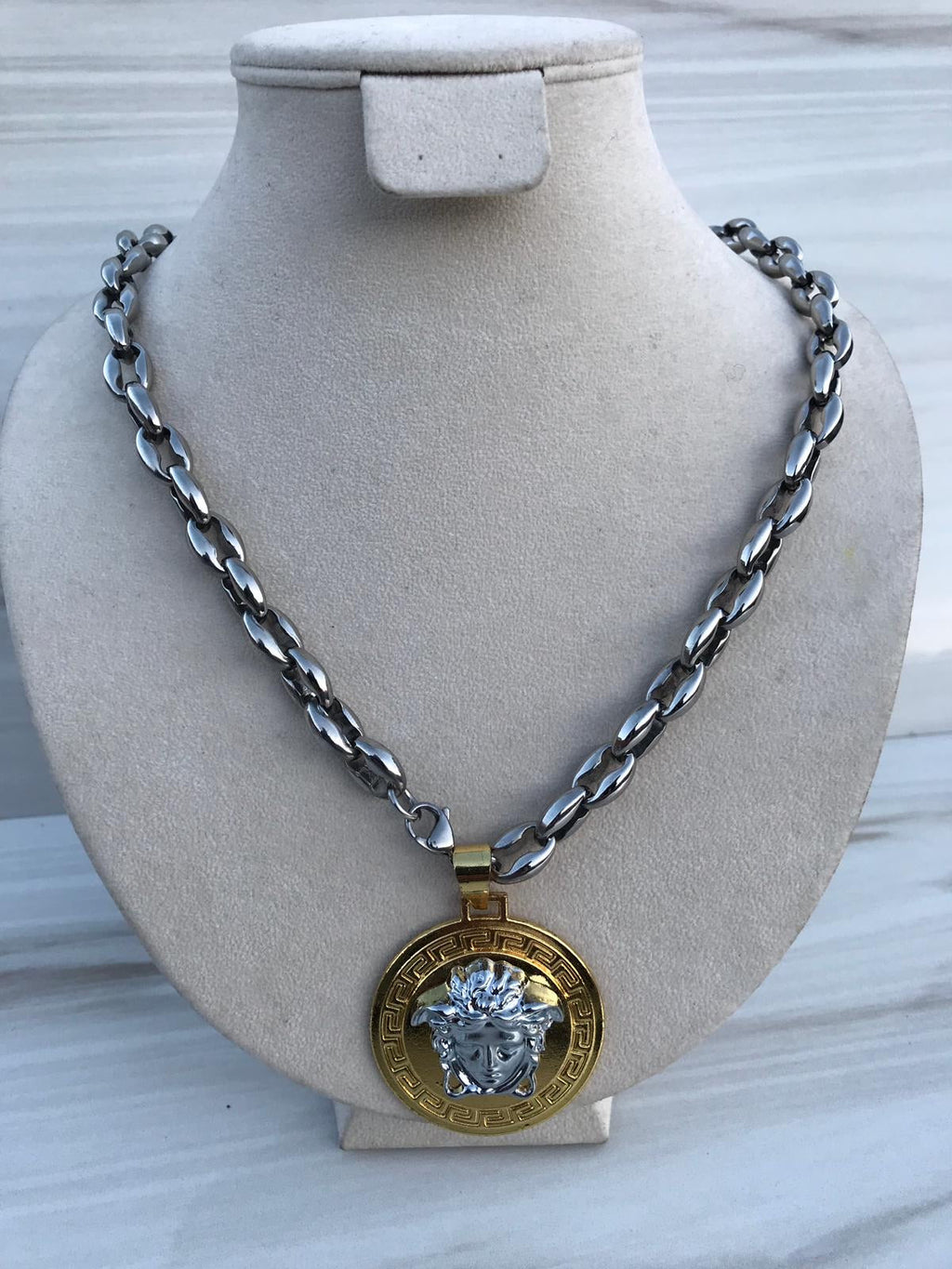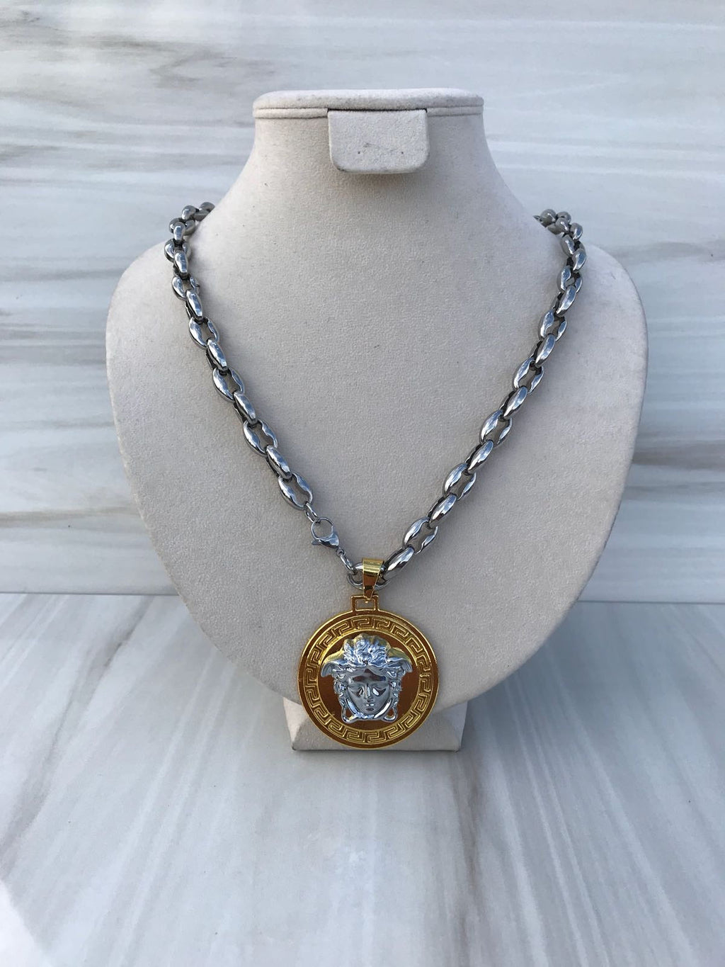 Full Grey Silver colo Necklaces with bi-color medusa (gold&silver)