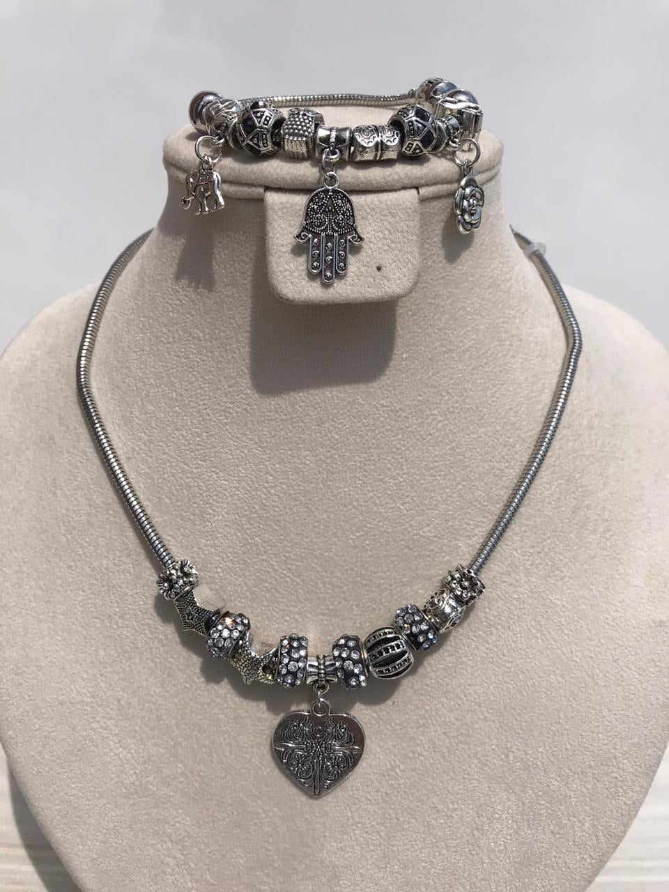 Full set of pandora, grey mixed heart Necklace