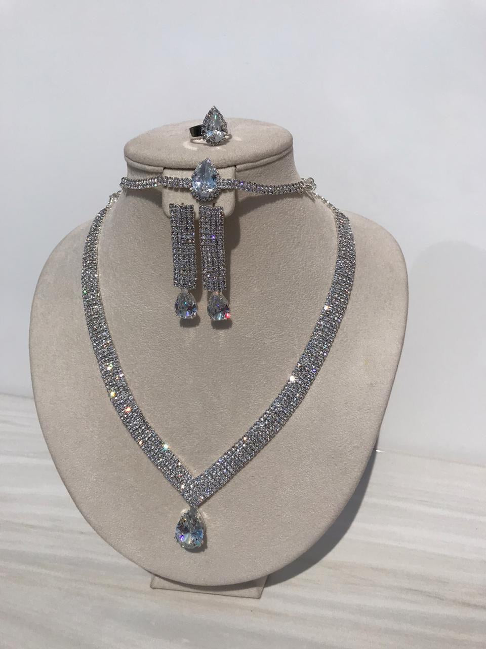 Full set of Zircon mixed queen diamonds Necklace bling bling rocks with zircon ears